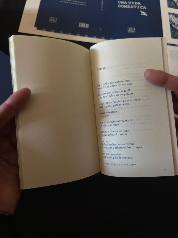 Estos versos que le son propios también le son ajenos, puede ser tortuga- langosta, estos pequeños grandes gestos íntimos y cotidianos construyen “Una vida doméstica”.